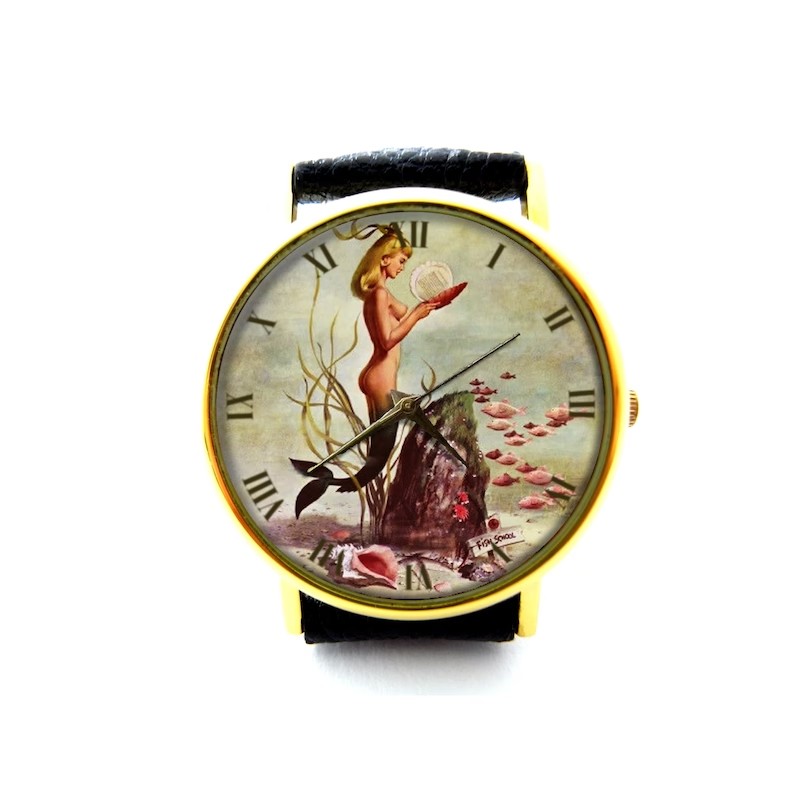 Retro Mermaid Leather Watch, Vintage Mermaid Watch, Mermaid Ladies Watch, Unisex Watch, Mermaid Jewelry