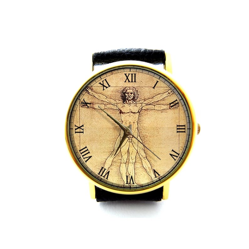 Leonardo Da Vinci Leather Watch, Vitruvian Man Watch, Vitruvian Man, Unisex Watch, Leonardo Da Vinci Jewelry, Leonardo Da Vinci Accessory