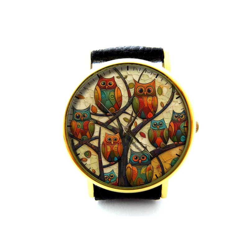 Owl Family Leather Watch, Antique Owl Ladies Watch, Owl Unisex Watch, Vintage Owl Watch, Owl Jewelry