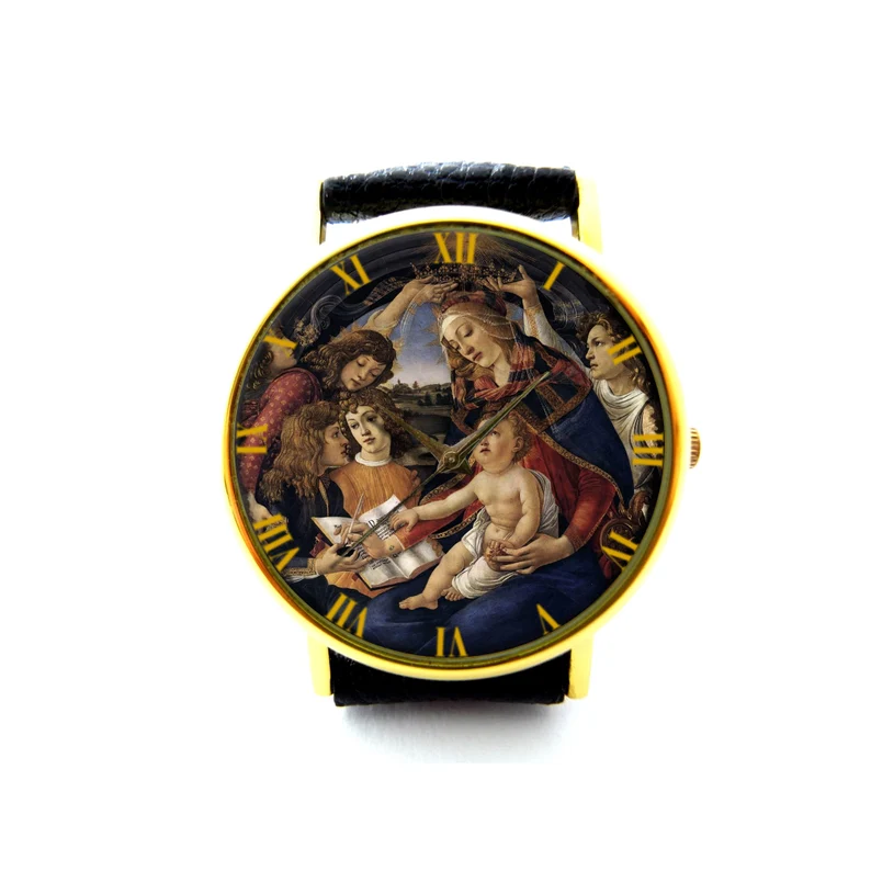 Sandro Botticelli "A Virgem do Magnificat" Leather Watch, Botticelli Art Watch, Romantic Gift Jewelry, Lovers Gift
