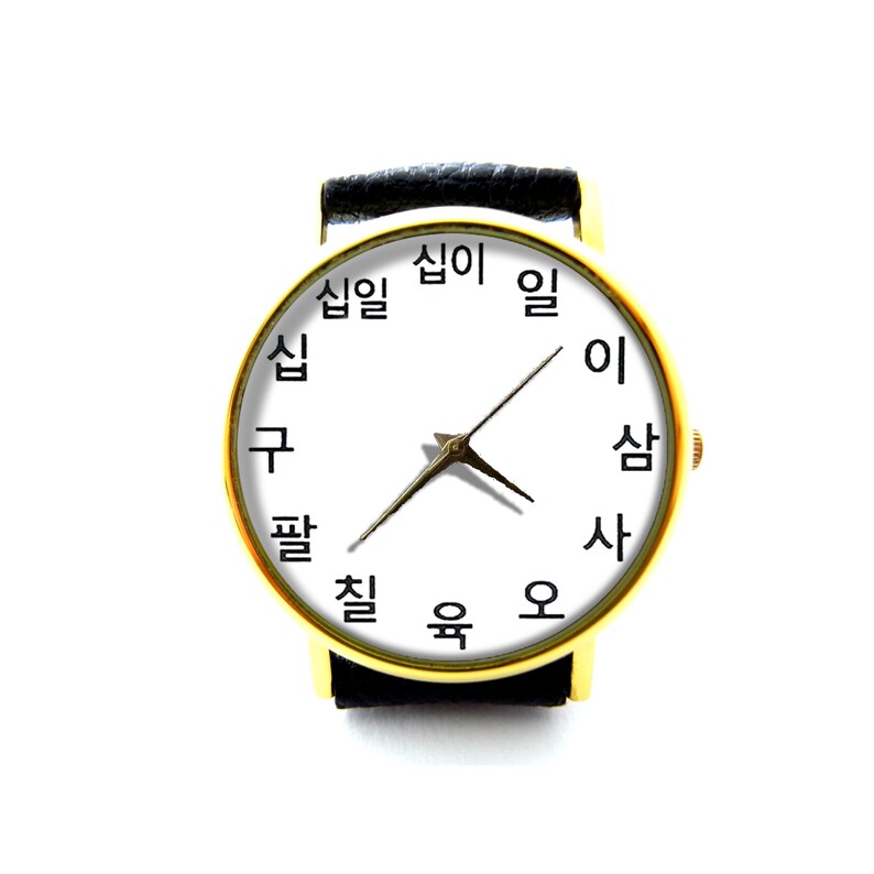 Sino-Korean Numerals Leather Watch, Numbers Watch, Unisex Watch, Korean Clock, White Face Watch, Korean Numerals Watch