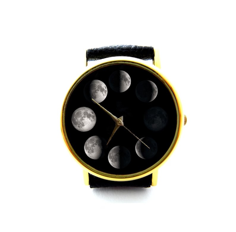 Moon Phase Leather Watch, Unisex Watch, Ladies Watch, Mens Watch, Personalized Watch