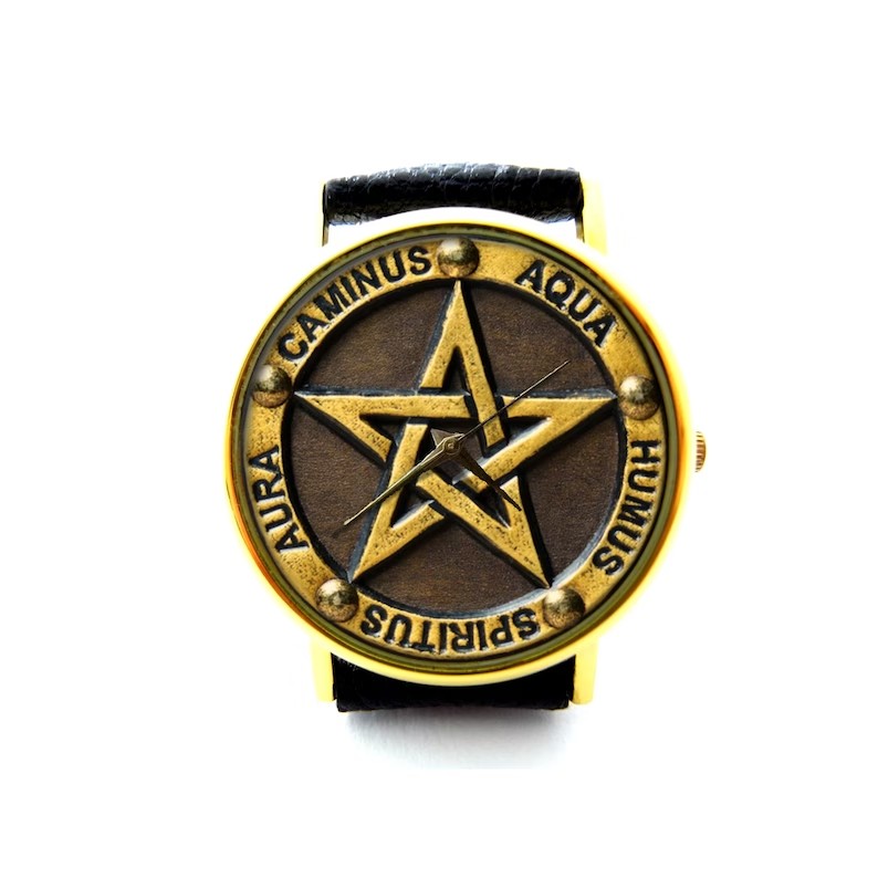 Pentagram Leather Watch, Pentagram Symbol Watch, Unisex Watch, Star Watch, Magic Circle Watch, Pentagram Jewelry