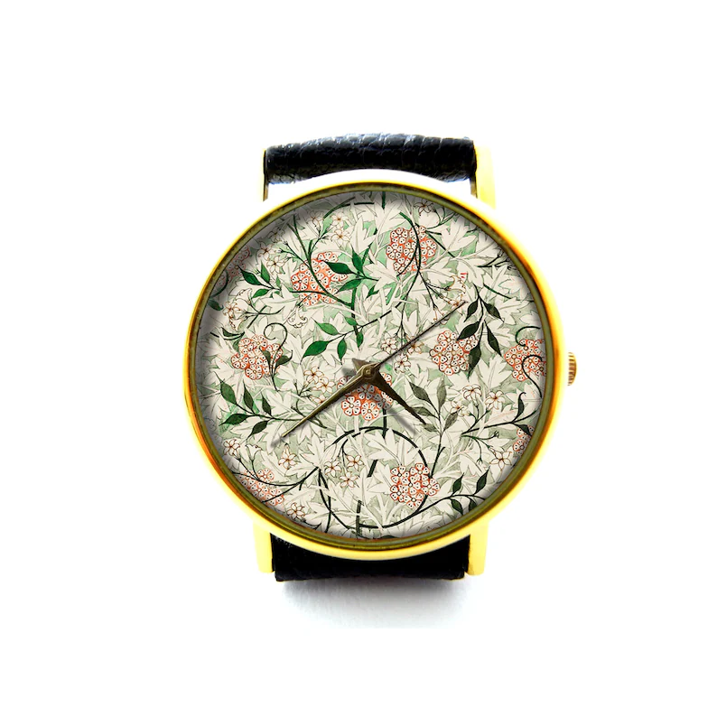 Vintage Aesthetic Leather Watch, William Morris Print Ladies Watch, Unisex Watch, William Morris Art Jewelry