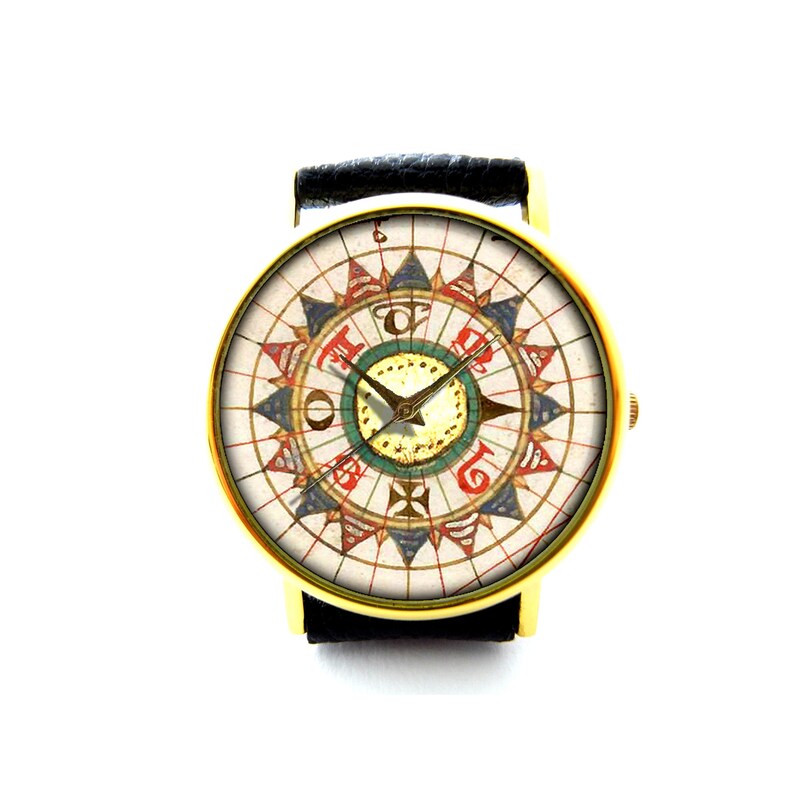 Compass Leather Watch, Vintage Compass Watch, Antique Compass Watch, Compass Watch, Ladies Mens Watch, Compass Jewelry, Pattern 3