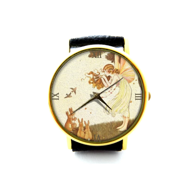Anne Playing the Pipes Leather Watch, Fairy Ladies Watch, Unisex Watch, Fairy Jewellery