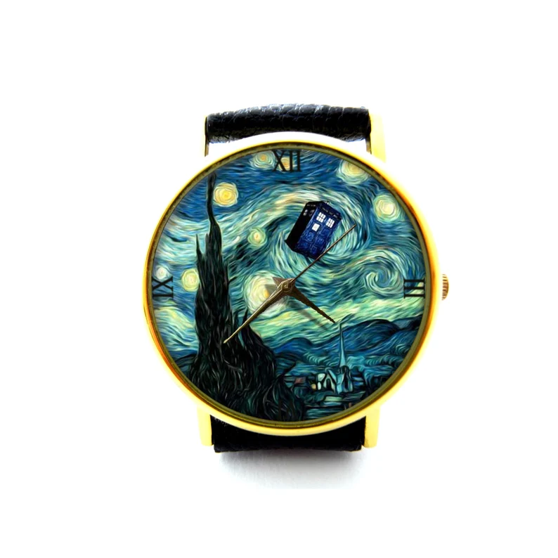 Dr Who Starry Night Leather Watch, Vincent and the Doctor Dr Who Ladies Watch, Unisex Watch, Tardis Jewelry, Tardis Watch